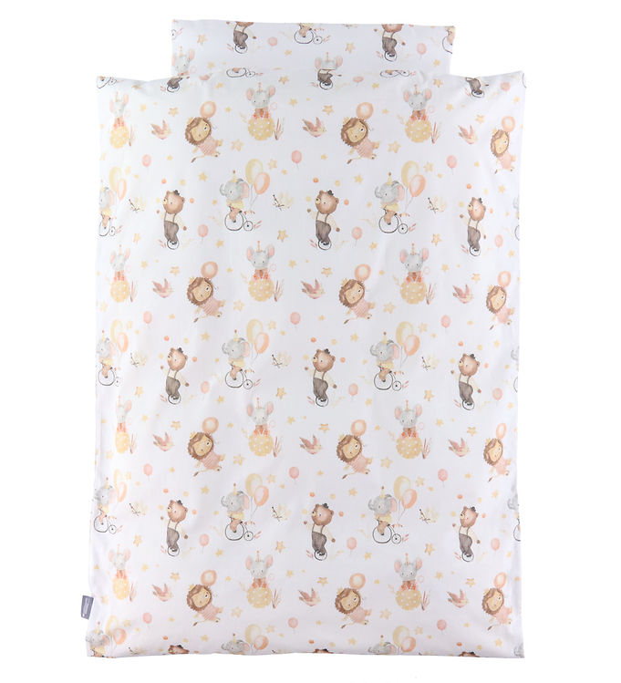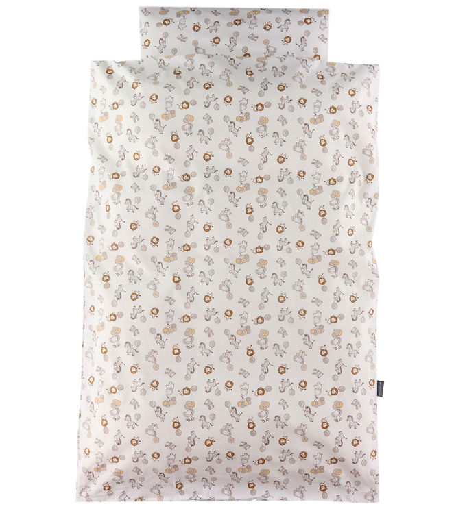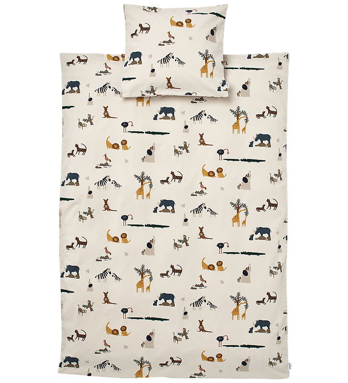 Junior sengetøj 100×140 cm – Beige sengesæt med safari dyr – 100% blødt bomulds sengelinned