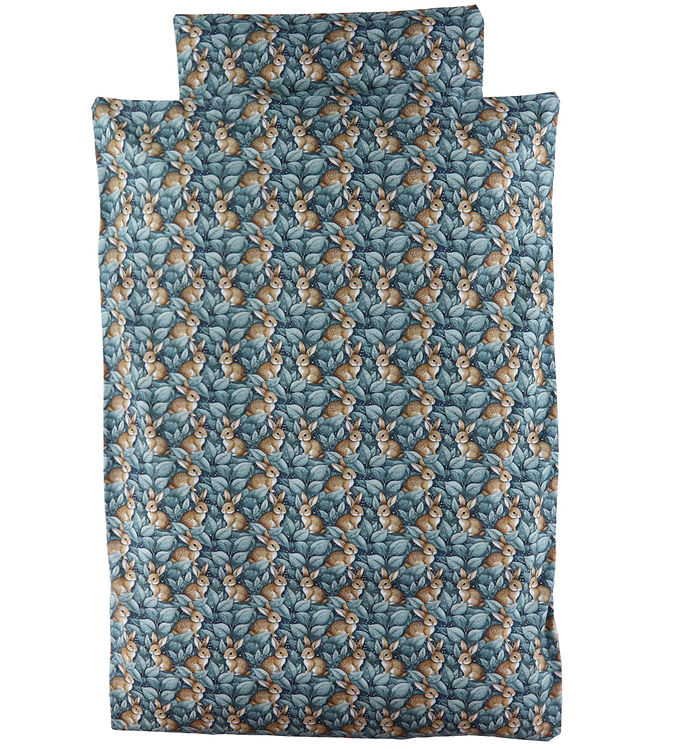 Junior sengetøj 100% Blødt bomuld – 115×135 cm – Sengesæt med blå med kaniner til børn