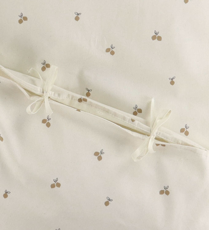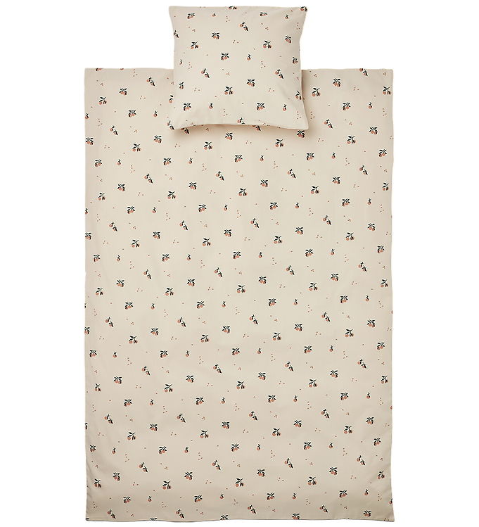 Junior sengetøj 100×140 cm – Råhvidt sengesæt med små frugter – 100% blødt bomulds sengelinned