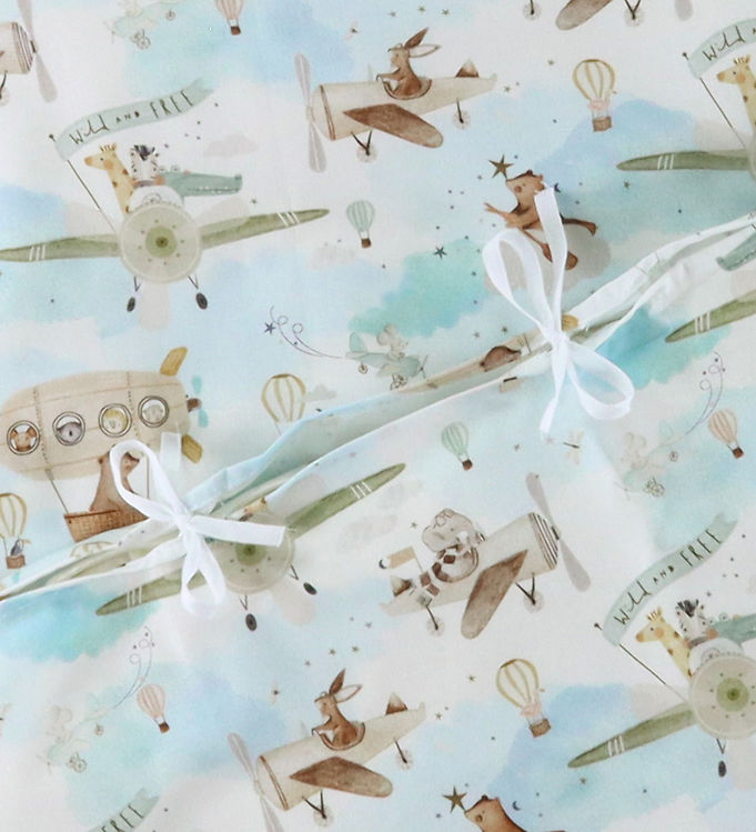 Gurli Gris sengetøj 100×140 cm – Gurli Gris junior sengesæt – Flyver i luftballon – 100% blød bomuld