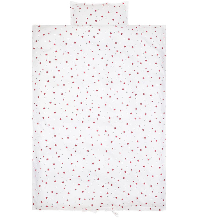 Junior sengetøj 100% bomuld – 100×140 cm – Hvidt sengesæt med fine røde hjerter – Nordstrand Home blødt dynebetræk