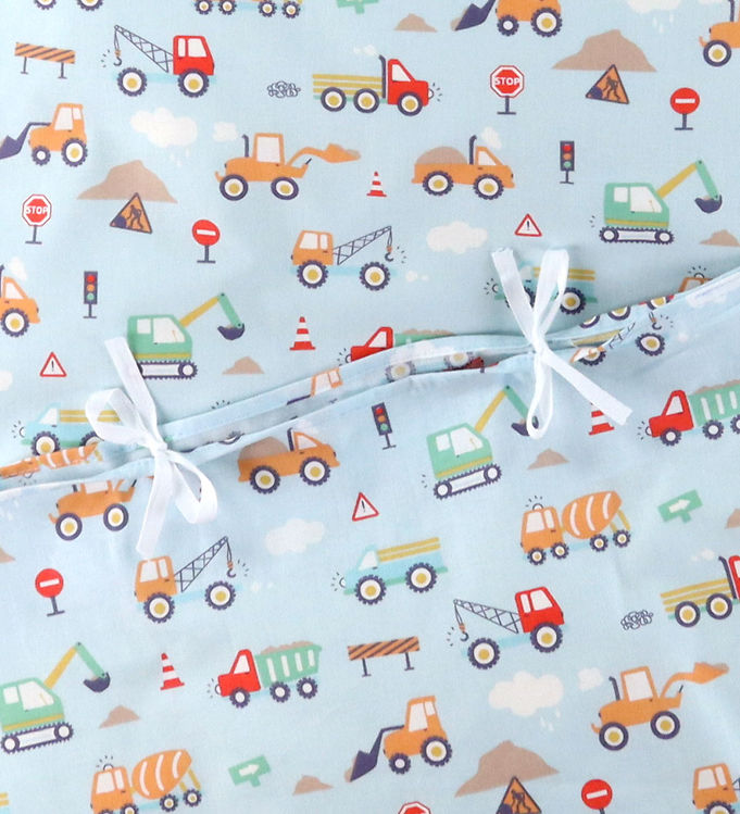 Junior Sengetøj Grå Med Kran Og Cementbiler – Baby sengetøj – Legekammeraten.dk