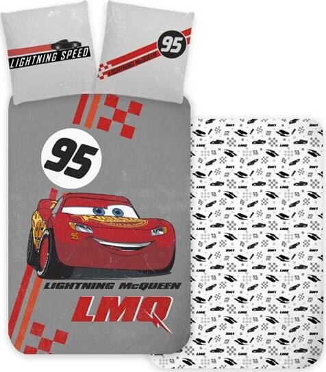 Cars sengetøj 100×140 cm – Gråt junior sengesæt med Lynet McQueen – Vendbart motiv – 100% bomulds sengelinned