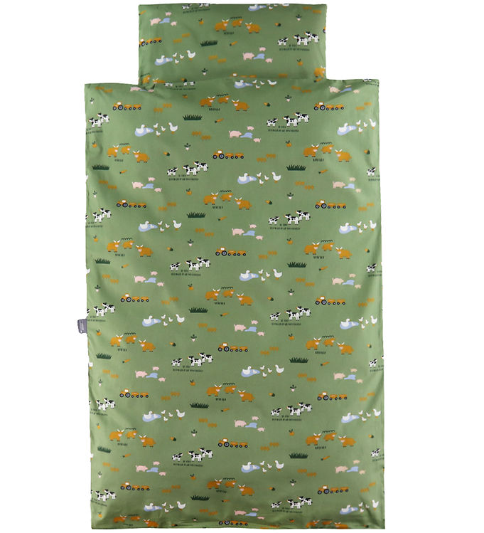 I en skøn nuancer af grøn indfanger dette sengetøj den landlige idyl med sin charmerende bondegårdsstil. Motiverne af dyr, høskure og det frodige landskab inviterer til legende fantasier, hvor kalve og får spiller hovedrollerne i dit barns natlige eventyr. Hver gang dit barn ser på det, vil der opstå en glæde og nysgerrighed, som stimulerer deres fantasi og skaber en positiv og inspirerende stemning, der gør sengetidsrutinen til et kærkomment øjeblik dagen igennem.